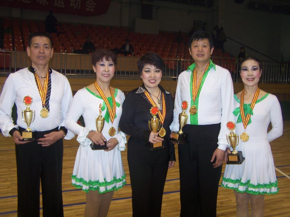 吉特巴舞大赛;C组冠军羽海、边旭红、企业家组冠军;王广发、翟新平和教练在一起