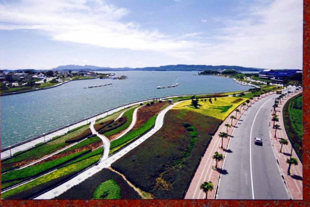 岳阳南湖边的绿地真美,这湖面有多大?